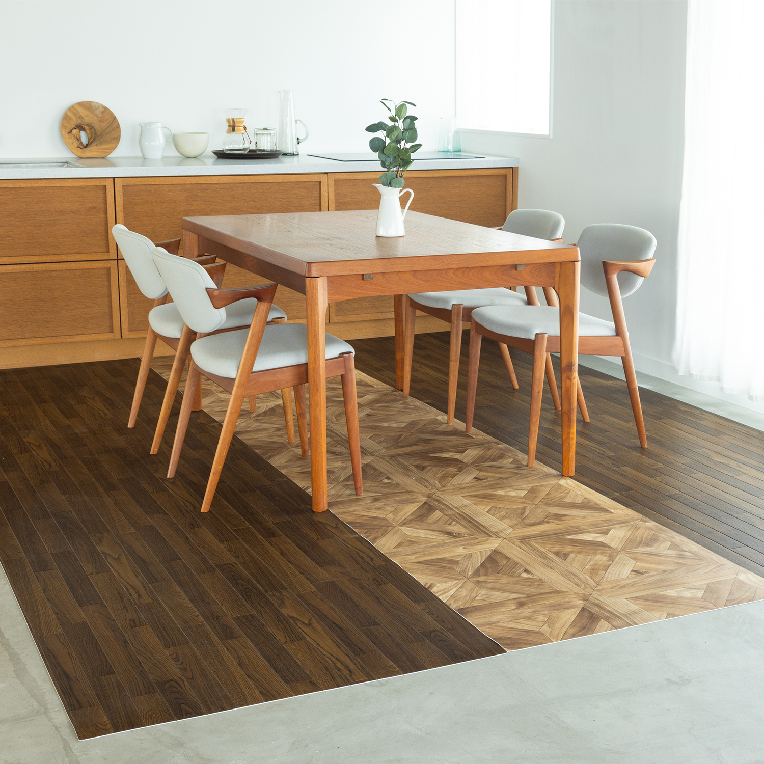 パーケット柄 拭けるラグ ウォールナット 184cm幅(92cm×2本)