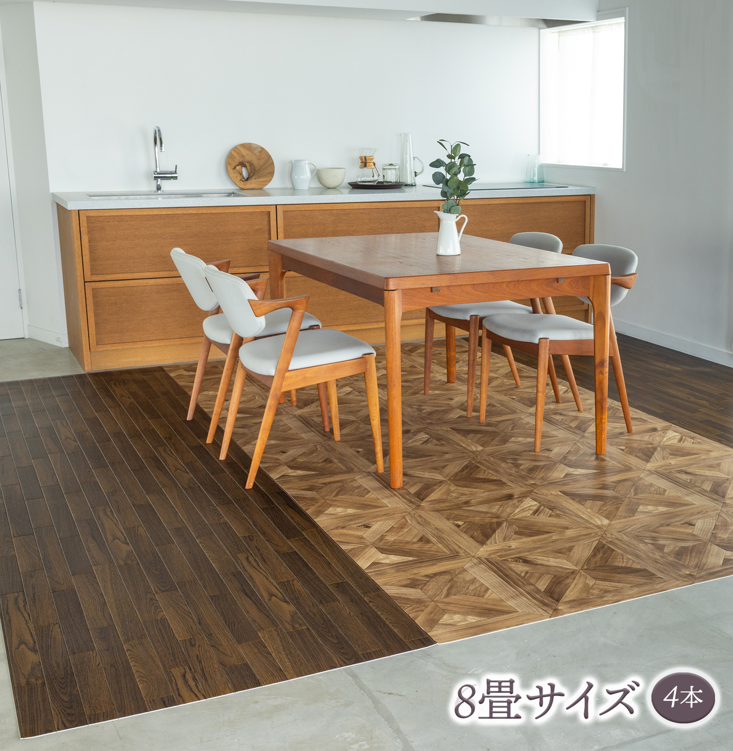 パーケット柄 拭けるラグ ウォールナット 184cm幅(92cm×2本)