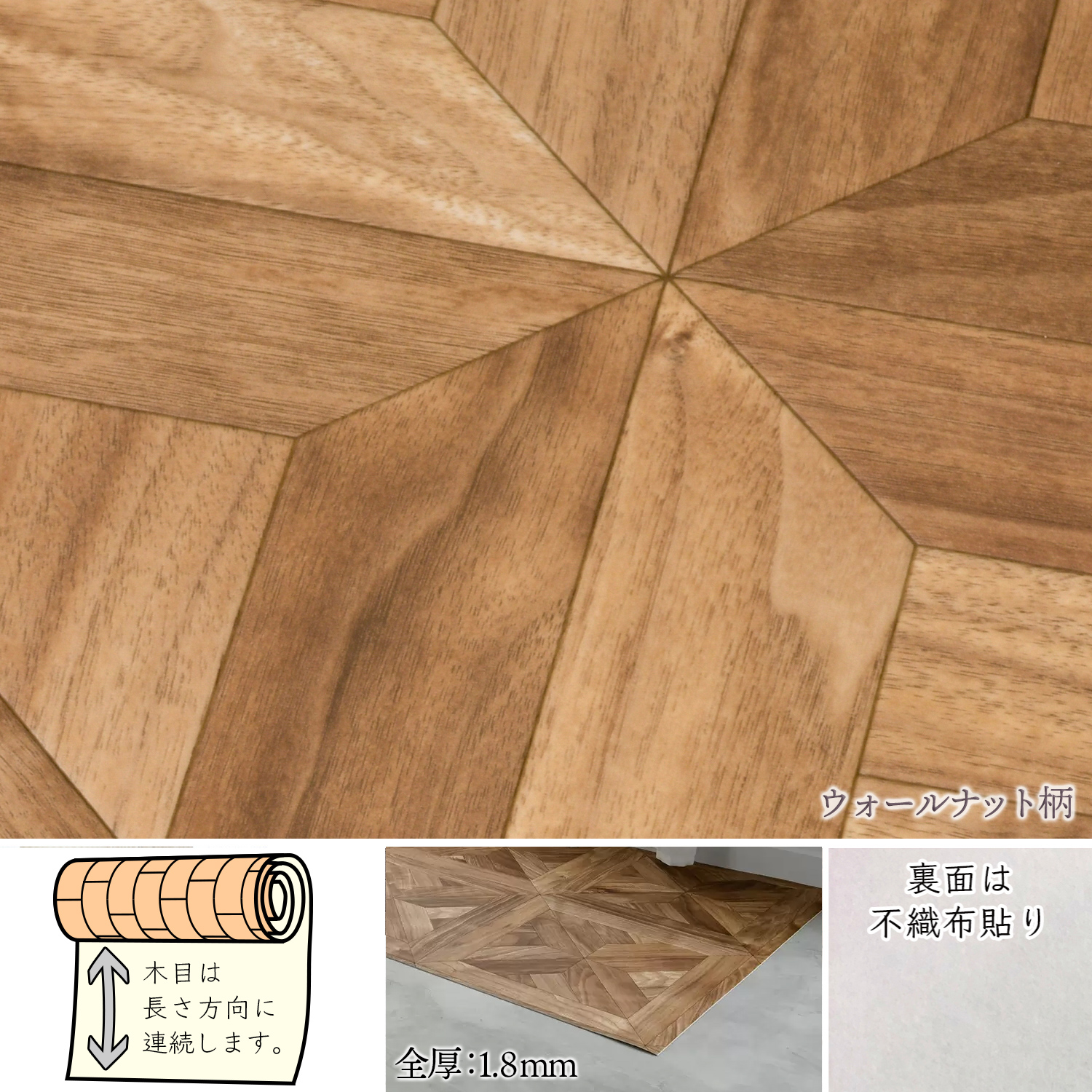 パーケット柄 フロアマット 184cm幅(継ぎ目なし) ウォールナット
