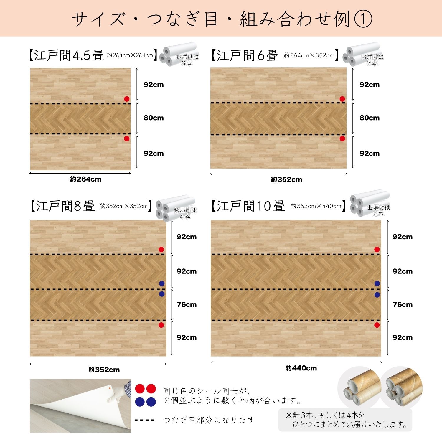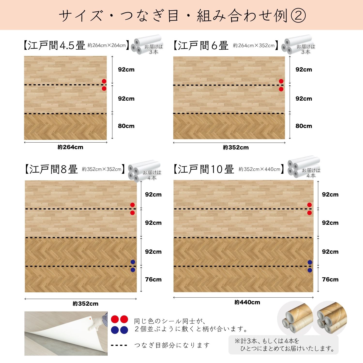 ツートンフロアマット 敷き詰め ダブルオーク 江戸間 4.5畳・6畳・8畳・10畳