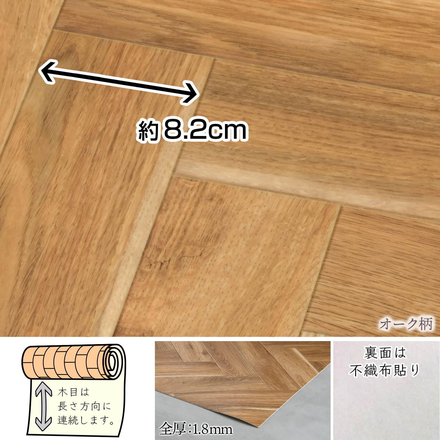 ヘリンボーン フロアマット 184cm幅(継ぎ目なし) オーク