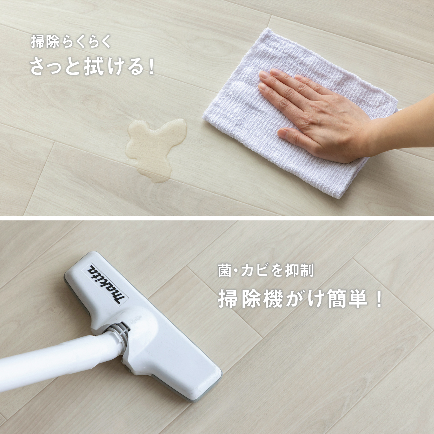 ラグリエのオーダー商品は、お部屋のサイズに合わせて簡単に注文できるだけでなく、並べて敷いたときに、なるべく違和感が出ないように『板目合わせ・目地合わせ』で簡易的な柄合わせ加工もしますので、初心者の方でも、簡単にきれいに敷くことができます。