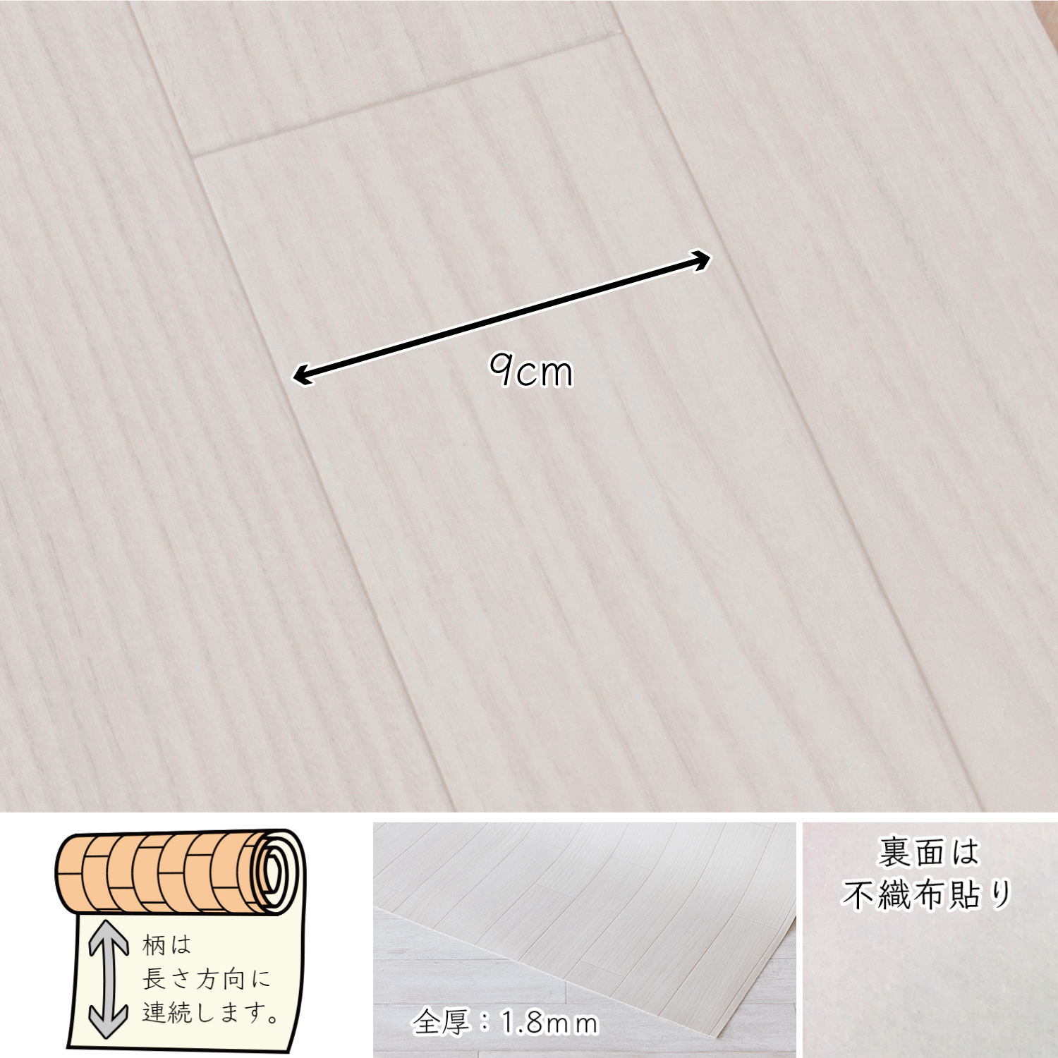 シンプル フロアマット 184cm幅(継ぎ目なし) 木目アイボリー