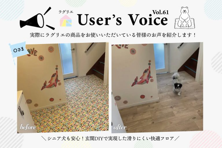 実際にラグリエの商品をご購入&お使いいただいている皆様のリアルな声をご紹介します。 もくじ1 シニア犬との暮らしにやさしい玄関DIY。ペットマットで滑りにくく安心な空間に!1.0.1 after1.1 【お客様の声】2 … 続きを読む 【USER’S VOICE 61】シニア犬も安心!玄関ペットマットDIYで実現した滑りにくい快適フロア
